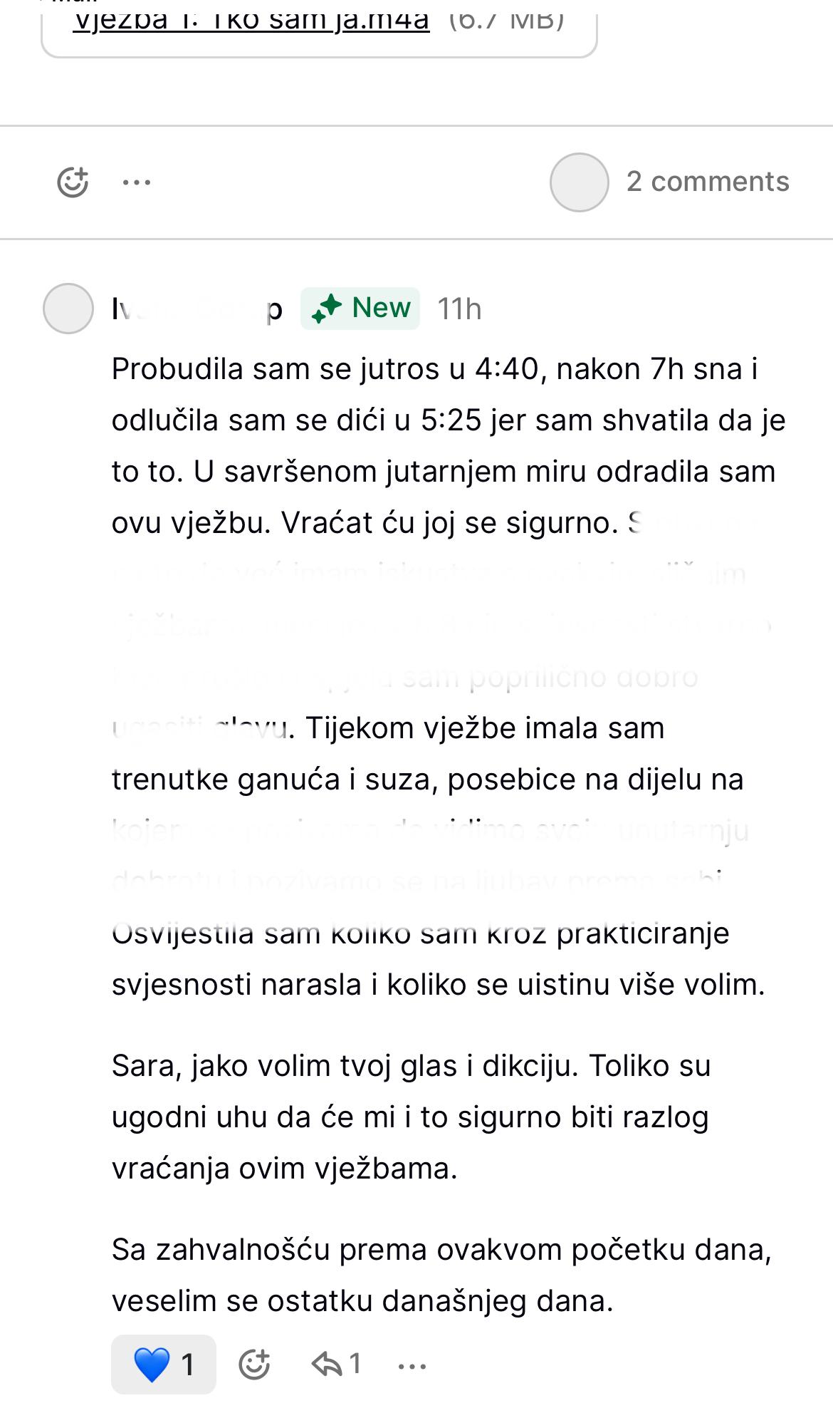 Ne želiš biti previše aktivna u zajednici. Zajednica je tu da postaviš pitanje ili sudjeluješ u raspravama. Ako nisi tip koji se voli izlagati, svejedno si dobrodošla. Pristup predavanjima, vježbama i live Q&A imaš bila aktivna u grupi ili ne...